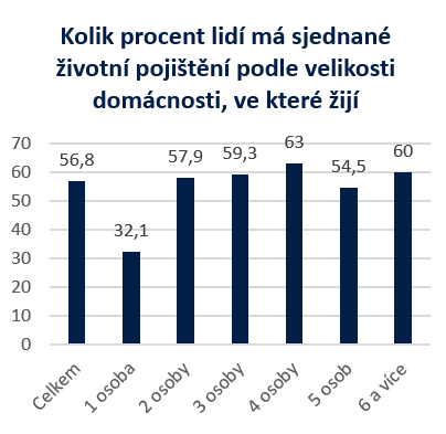 Životní pojištění nemá sjednáno 43,2 % lidí. U žen jde o rovnou polovinu, u lidí žijících o samotě pak dokonce o více než dvě třetiny. Zároveň mají Češi o životním pojištění velmi malé povědomí – půlka lidí se domnívá, že jeho součástí je i léčba alergií, každý třetí si dokonce myslí, že pokrývá i antikoncepci. Malý zájem a špatná znalost přitom neznamená, že by lidé životní pojištění nepotřebovali, dvě třetiny Čechů už zažily situaci, kdy by jeho služby využili.