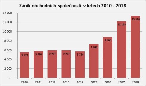 V roce 2018 vzniklo v České republice 31 634 obchodních společností a zaniklo jich 13 328. Počet nově vzniklých obchodních společností byl druhý nejvyšší v historii České republiky, zatímco počet zaniklých společností byl nejvyšší v historii ČR. Celkem tak v České republice v uplynulém roce přibylo 18 306 obchodních společností. Vyplývá to z analýzy, kterou provedla společnost CRIF na základě dat portálu www.informaceofirmach.cz.