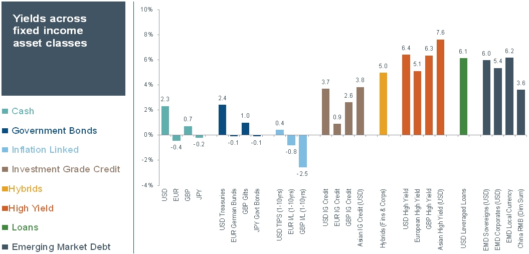 Zdroj : Fidelity International, Bloomberg, JPM, ICE Bank of America Merrill Lynch