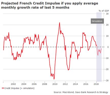 Reformy na podporu podnikání a silný úvěrový impuls, který skutečnou ekonomiku předchází zhruba o 9-12 měsíců, se projevily v celkovém zlepšení ekonomických údajů ve Francii: vyšší PMI, rostoucí domácí poptávka a soukromé investice navracející se na úroveň z roku 2010. Mezi francouzským úvěrovým impulsem a finální domácí poptávkou (a také fixními soukromými investicemi) existuje vysoká korelace 0,70 ku jedné.