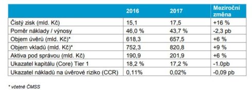 - Objem úvěrů vzrostl na 657 miliard Kč* (meziročně o 6 %), zvyšovala sei kvalita úvěrového portfolia – podíl úvěrů v selhání na rekordně nízkéhodnotě 2,3 %