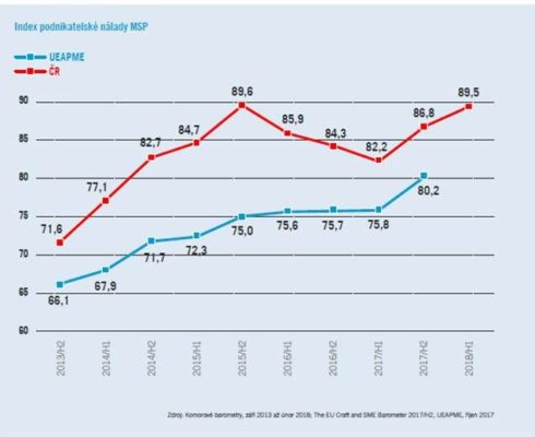 Index podnikatelské nálady MSP pro první polovinu roku 2018 vzrostl z 86,8 na 89,5. Jedná se o výsledek srovnatelný s rokem 2015, kdy česká ekonomika zaznamenala meziroční růst HDP ve výši 5,3 %. I když výsledky za evropské země budou známy až se zpožděním, s největší pravděpodobností si čeští podnikatelé udrží náskok i pro následující období.