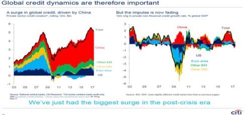 Zajímavé je, že i přes současnou býčí náladu a vysoké nacenění aktiv, tu máme riziko vážného zpomalení. Při sledování úvěru mluvíme o „úvěrovém impulsu“ nebo o čisté změně úvěrů na HDP. Úvěrový impuls předbíhá reálnou ekonomiku zhruba o devět měsíců.